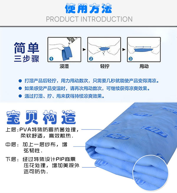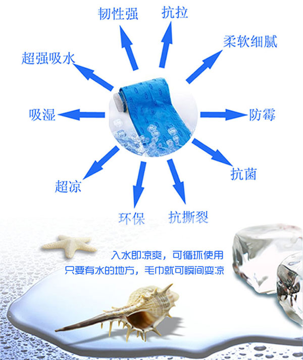 降溫毛巾,使用方便、不用冷藏、不需用電,一次加水,使用時(shí)間長達(dá)數(shù)小時(shí),工作時(shí)佩戴,不僅能止汗,還能使身體感到?jīng)鏊?,簡直是高溫作業(yè)者的必備降溫用品。